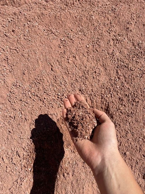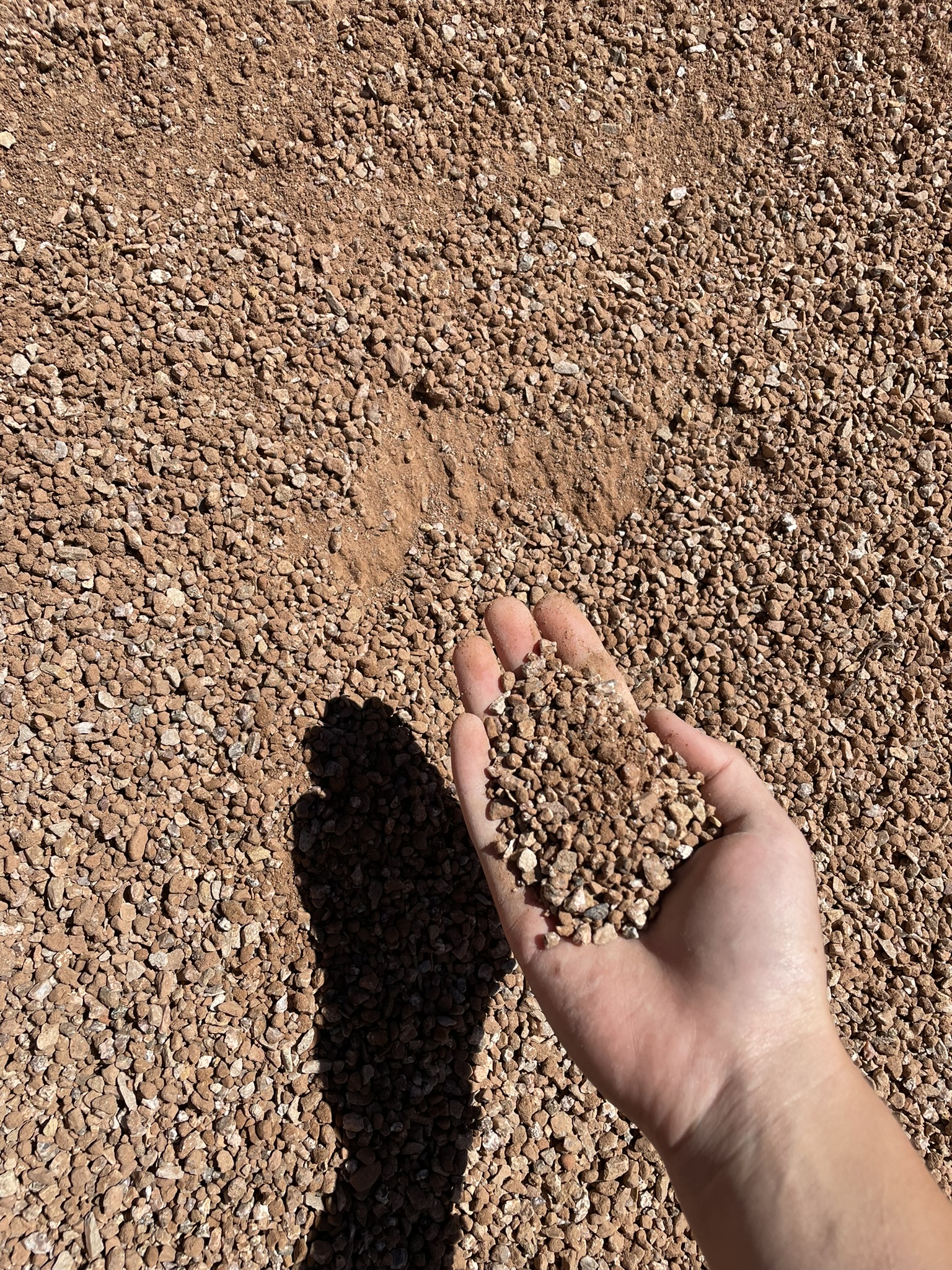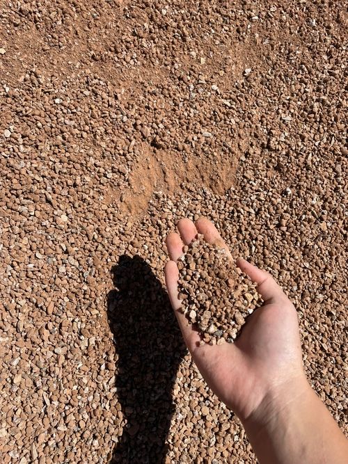 Light brown crusher finesPage crusher fines best for walkways or flagstone base. Lots of variability in color, so please come see in-person before purchasing. ~2,300lbs per cubic yard