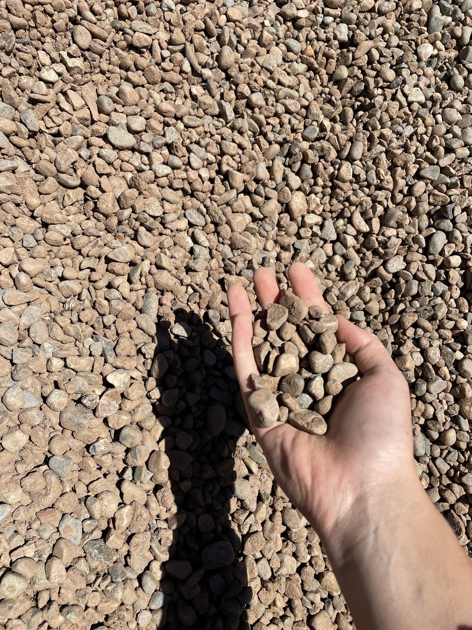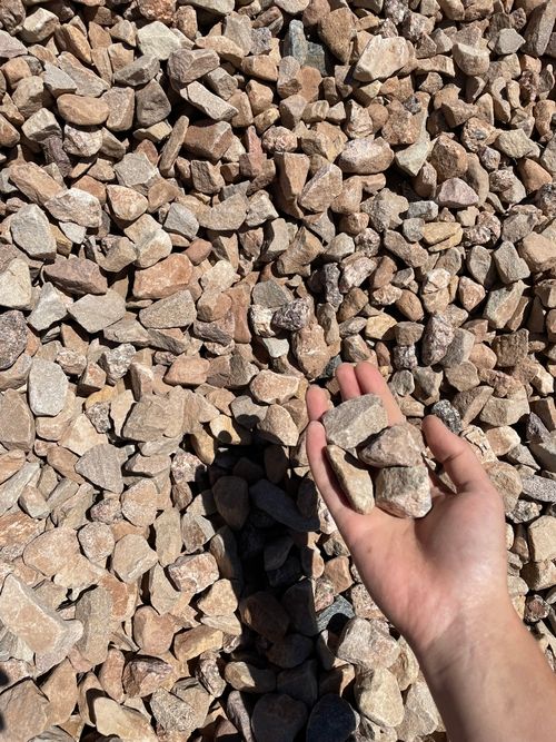 Granite and sandstone decorative gravel. 2,300-2,600lbs per cubic yard