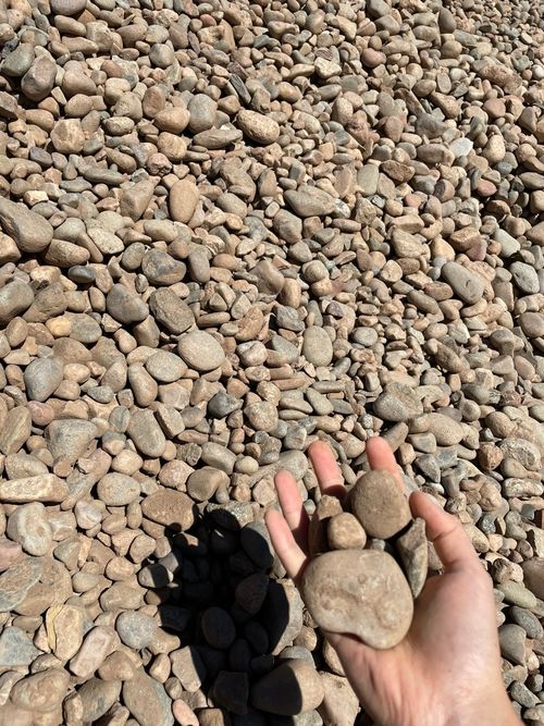 Round, mixed colors. Screened and locally mined from glacial depositions. 2,300-2,600lbs