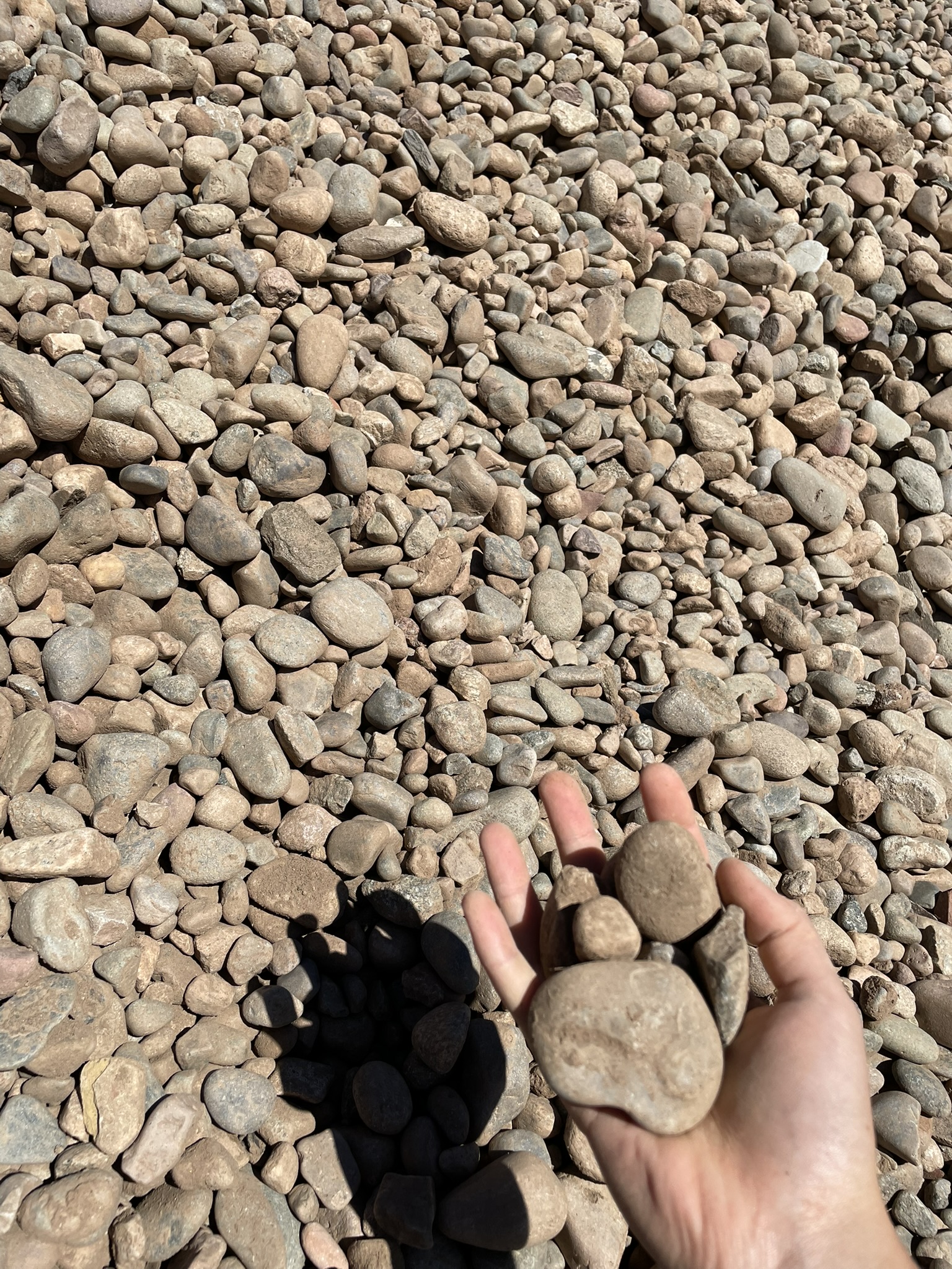 Granite and quartzite decorative gravel. 2,300-2,600lbs per cubic yard