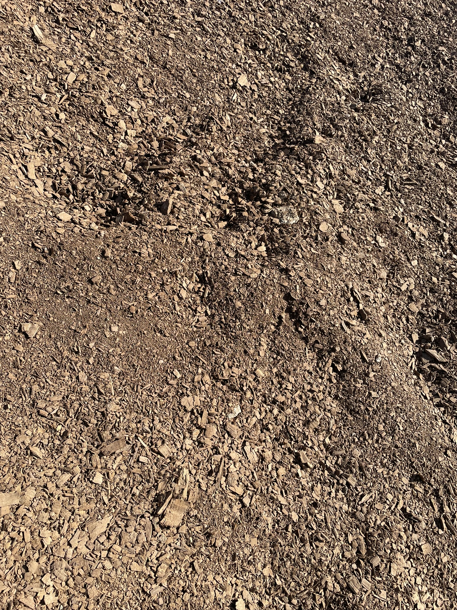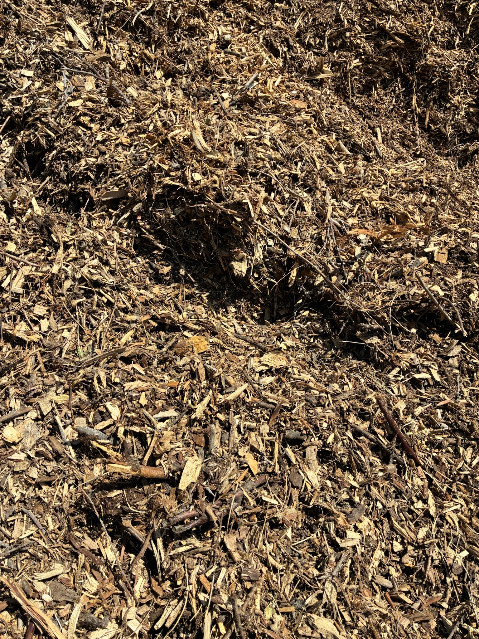 Informal in appearance and changes in composition depending on what the arborist is chipping up that day. Typically consists of sticks, chips, leaves, and needles. It is locally produced and the supply is sometimes short (dependent upon quantities being produced). Great for landscape areas that are being naturalized.