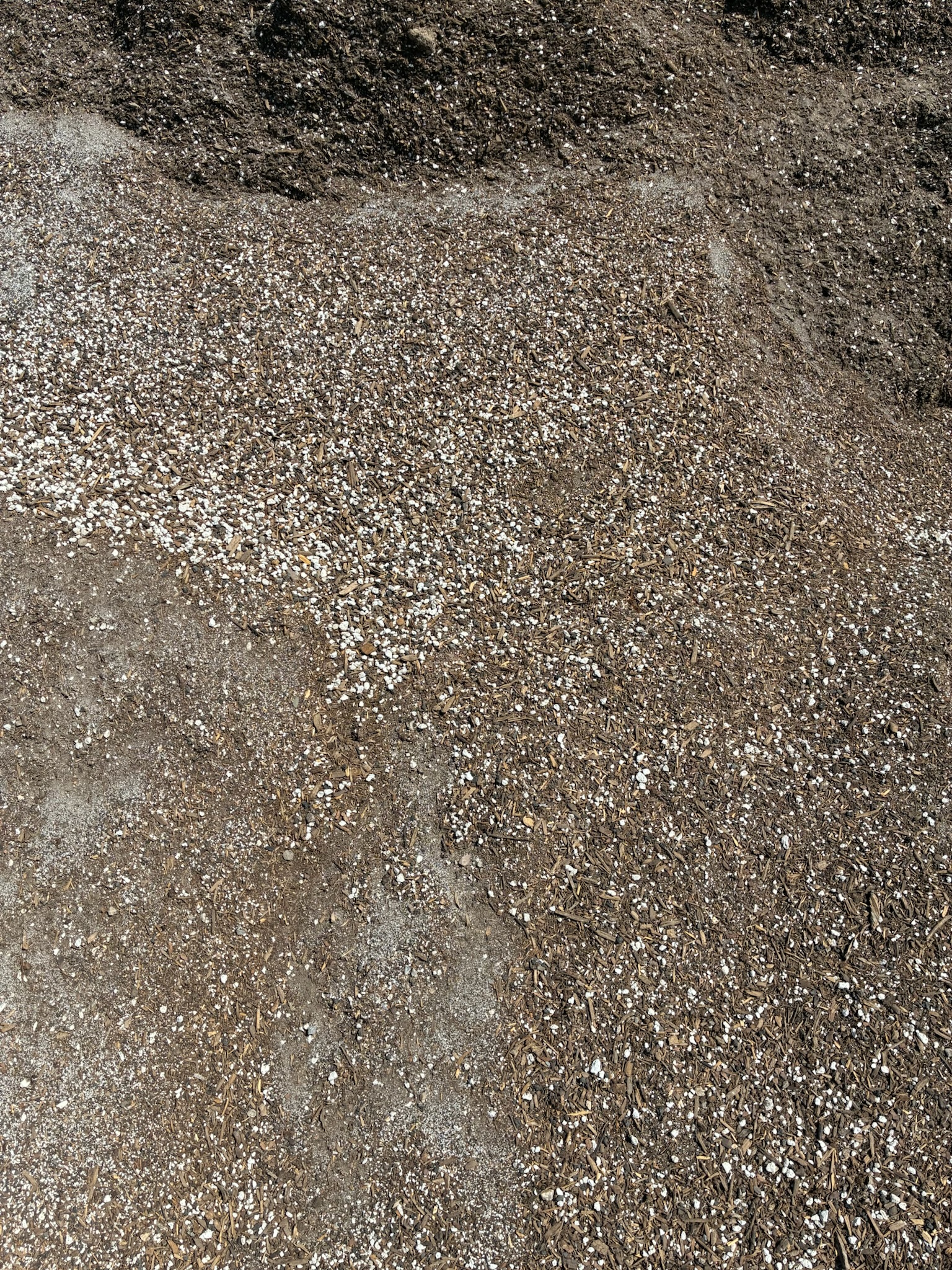 35% Compost, 25% Peat Moss, 20% Aged Spruce Fines, 15% Pumice, 5% Black Lava Rock, Wetting Agent. Best used for potting plants; high drainage and moisture retention qualities. Great for starting seed in small containers.