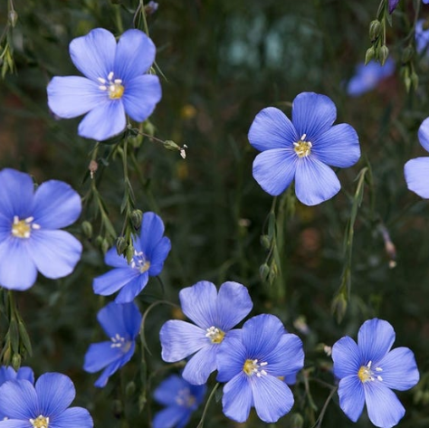 This drought tolerant perennial forms clumps of tall, slender stems with narrow, inconspicuous leaves. The plants are crowned with clusters of lovely, pale blue, cup-shaped flowers. Use Lewis Flax in xeriscaping schemes or in larger containers - it is hardy and durable. Plants grow to around 90cm (36") tall and bloom from mid to late summer. The stems make an interesting and airy touch to flower arrangements. This plant is often used for erosion control and its seed capsules are attractive to wild birds. All flax varieties can become established in the right conditions by spreading their seeds. However, they do not spread by rhizomes and are not considered noxious or weedy.